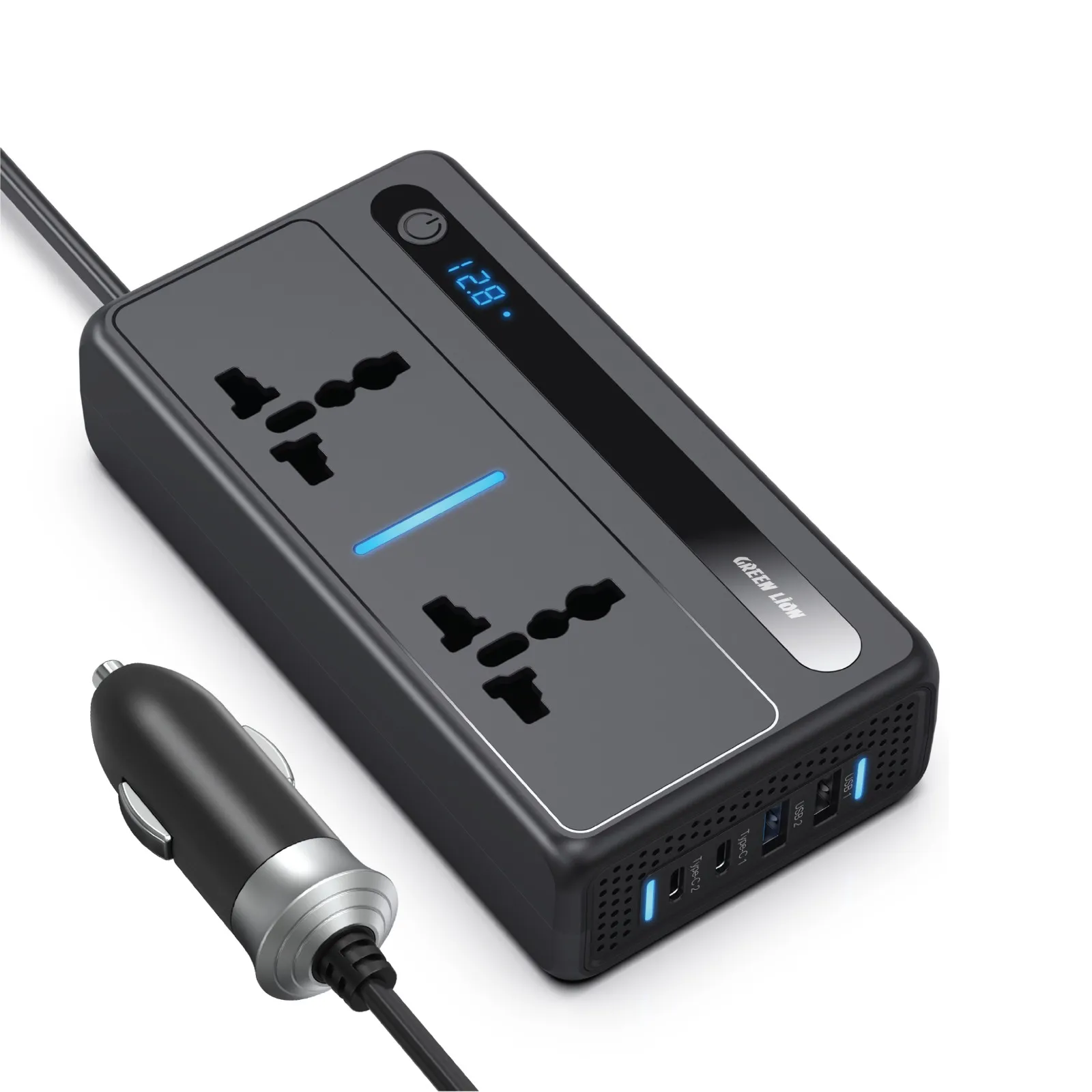 مبدل خودرو گرین لاین GC-250 یک دستگاه قدرتمند و کاربردی برای استفاده در سفرها و مواقع ضروری است که قدرت کافی برای شارژ دستگاه‌های مختلف شما را فراهم می‌آورد. این مبدل قادر است تا 200 وات برق را از طریق 6 درگاه مختلف تأمین کند: 2 پریز یونیورسال، 2 درگاه USB-A و 2 درگاه Type-C، تا بتوانید چند دستگاه را همزمان شارژ کنید.