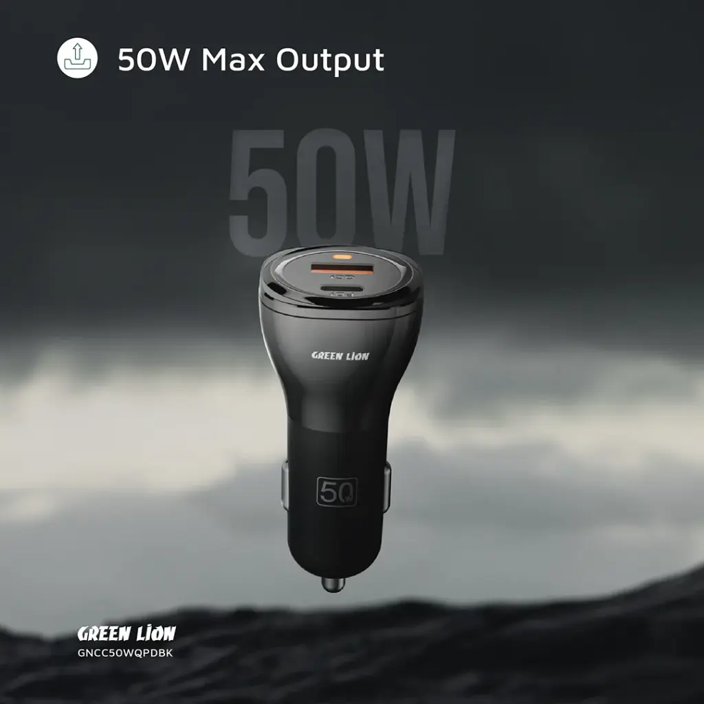 شارژر فندکی Green Lion Dual Port ۵۰W اجازه میدهد دو دستگاه را همزمان با سرعت بالا شارژ کنید: