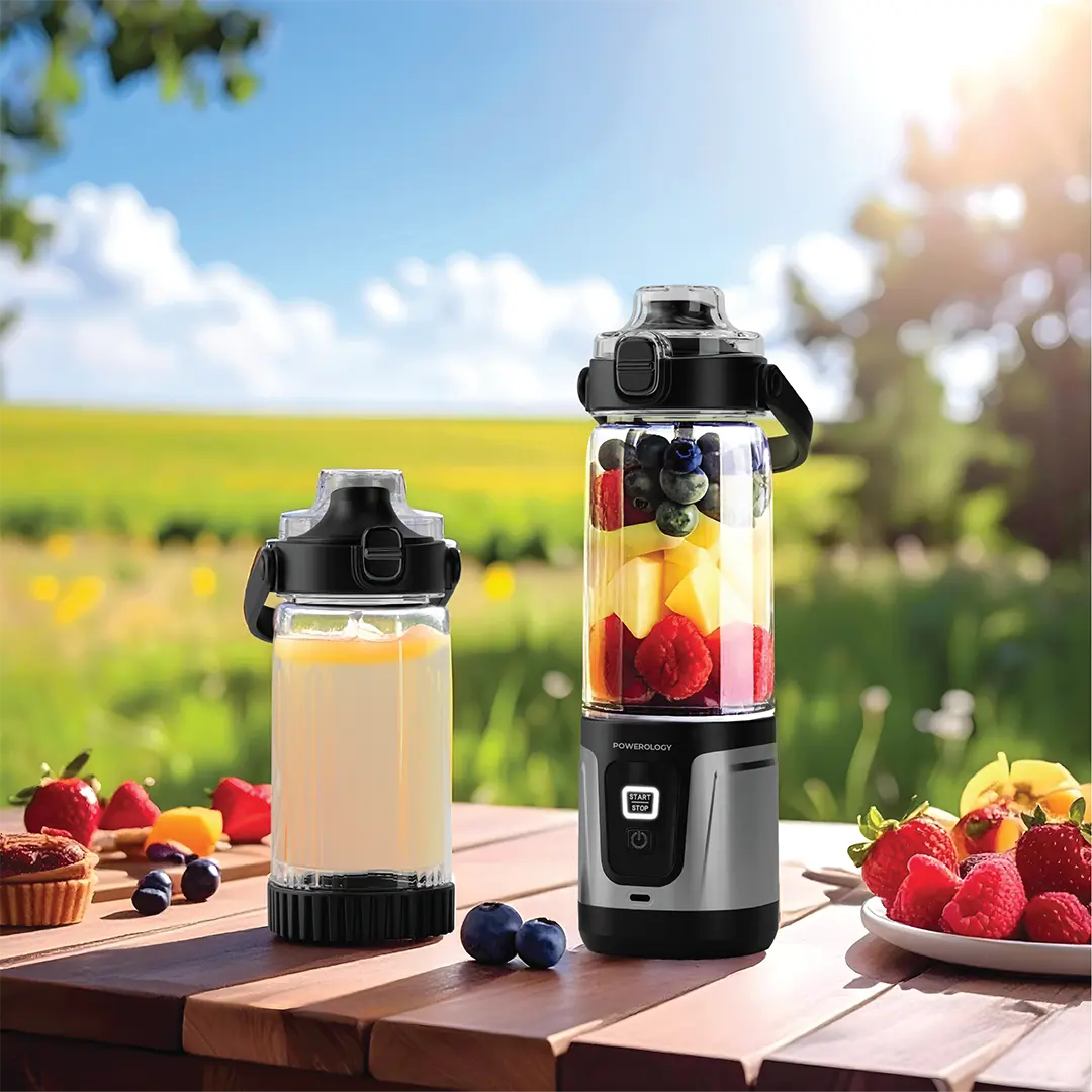 مخلوط کن قابل حمل 600 میلی لیتری دسته دار پاورولوژی به دو باتری 2000mAh مجهز شده که برای چندین بار استفاده کافی هستند. وجود درگاه USB-C امکان شارژ سریع و آسان را فراهم میکند، بنابراین همیشه آماده استفاده خواهد بود.